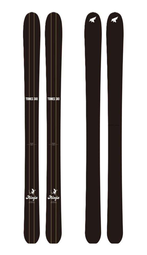 TONES SKI 待望のサードモデル。そして、機能美溢れる豊かさを演出するブラック版。忍者(ニンジャ)を名の由来とする。高山帯における情熱的な地形がイメージされた。テクニカルな斜面をリズミカルに落とし込めターンする様は家守(ヤモリ)のそれのようである。張り付くような動きとその多様性ある能力からは優雅ささえ満ち溢れてくる。ステアリング感にマニュアルドライブ感、そしてその楽しい乗り味の魅力。素晴らしい滑走感、走破性から取り回しのしやすさ、足元の安定感に加えテールの粘り具合など、このモデルが持つスキー形状から確認できる。そして、その味付けやバランスの調いは絶妙である。