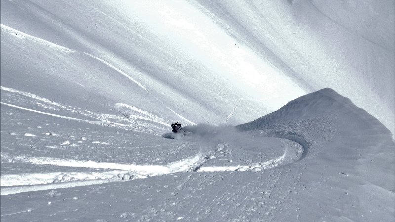 広大な斜面でときに時間差で同じ斜面に入る人がいる、その際に上の状況が確認できないことが多い、そこで予期せぬ事で上から雪面を切られ雪崩が襲って来たらどうでしょう。よって巻き込まれない為にも一息にトップからボトムまで滑り降りたい、その体力があるか。